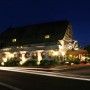Der Eingang und die Terrasse an einem warmen Sommerabend -