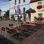 Das Bräustüble hat die Tische im kleinen Biergarten auf dem Hotelhof bereitgestellt -