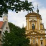 Klosterkirche in Ebrach vom Ortseingang aus Richtung Bamberg gesehen -