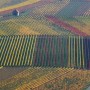 So sieht es im Herbst aus an der Mainschleife, Blick vom Weinberg über Escherndorf
