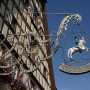 Der Landwehrsoldat schwebt als prächtiges Wirtsschild über dem Eingang des Gasthofes -