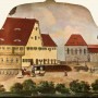 Das Hintergrundbild zeigt die wohl älteste Darstellung von Gasthof & Brauerei, um die Mitte des 19. Jahrhunderts -